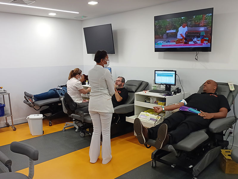 Um grupo de funcionários foi reunido a doar parte de um dia de descanso para contribuir com o Banco de Sangue do Hospital Beneficência Portuguesa, demonstrando uma preocupação com os pacientes que precisam de sangue.